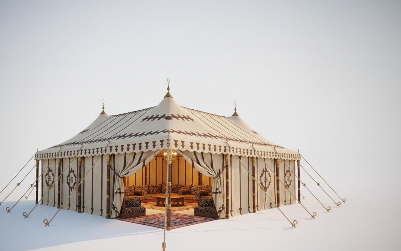 تصميم تراثي بدوي مستوحى من بيوت الشعر الأصلية