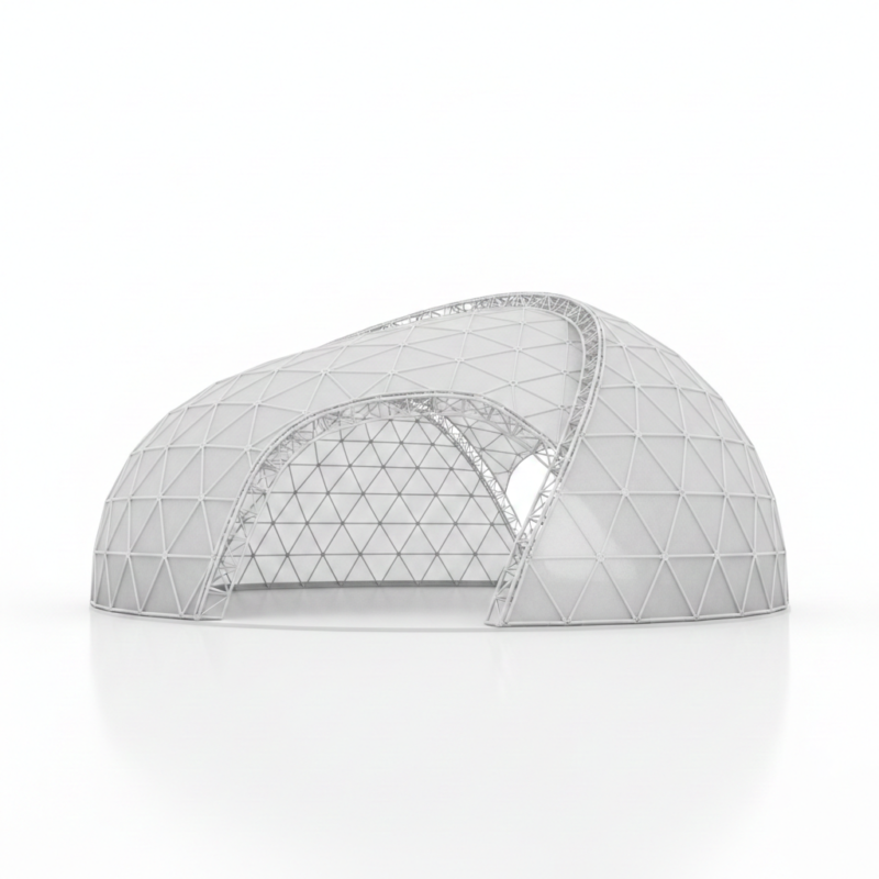 خيمة قوسية (Dome) بتصميم هندسي متطور يجمع بين الشكل العصري والمتانة العالية، لتكون خيارًا مثاليًا للمناسبات، المعارض، المستودعات المؤقتة، والفعاليات الخارجية.